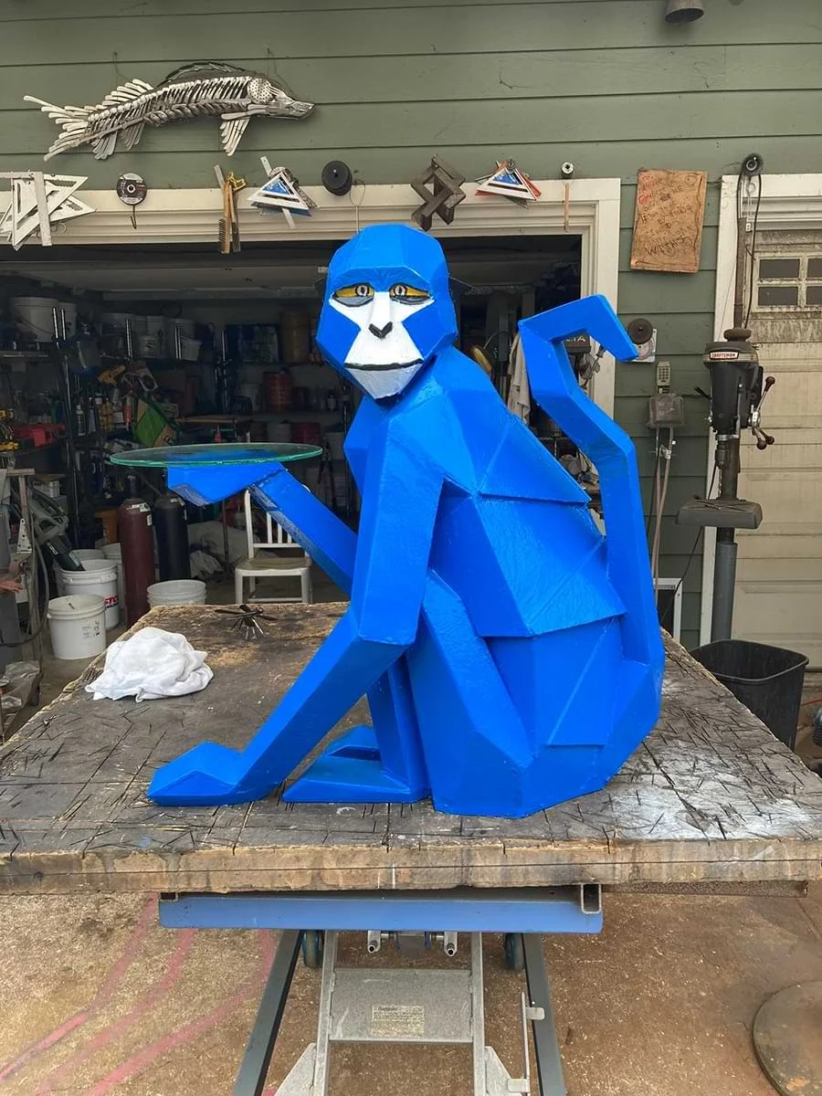 Blue Monkey scultpure by Dwight Hammack